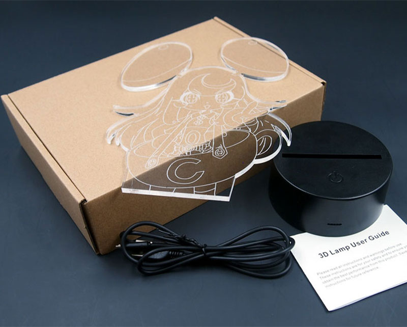 梱包詳細:LEDスタンド(台座)、アクリル板、USBケーブル、説明書(英文)