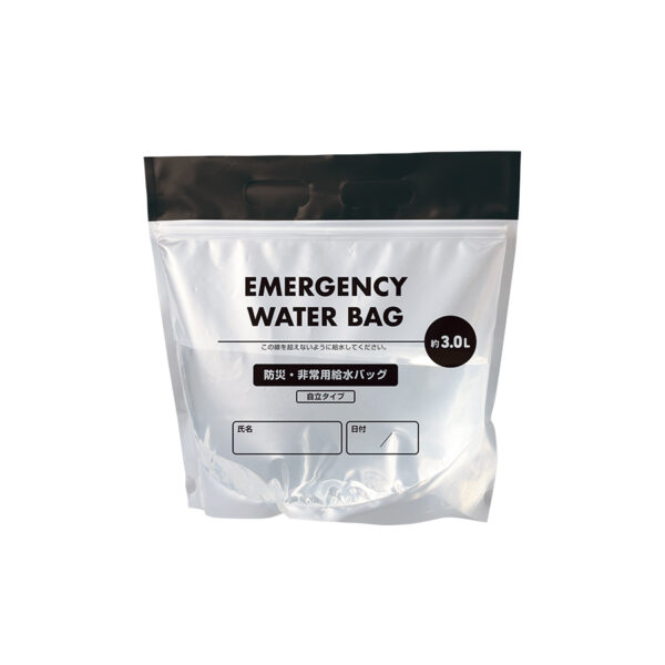 オリジナルで作成できる防災緊急7点セットのボトルは、ケースとしての役割だけでなくウォーターボトルとしても使用できます。ウォーターバッグ(非常用給水バッグ)とともに、水の確保に大変役立つセットです。