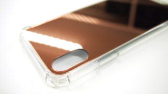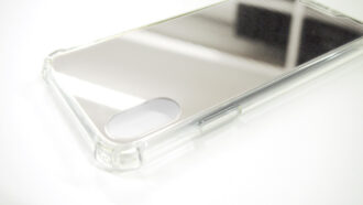 背面ミラー(鏡)スマホケースは、鏡も含めカバー全体が柔軟性のある素材で作られていますので、割れにくくスマホの保護性も高いです。鏡面プレートはちょっとした身だしなみチェックや化粧直しなどで便利。